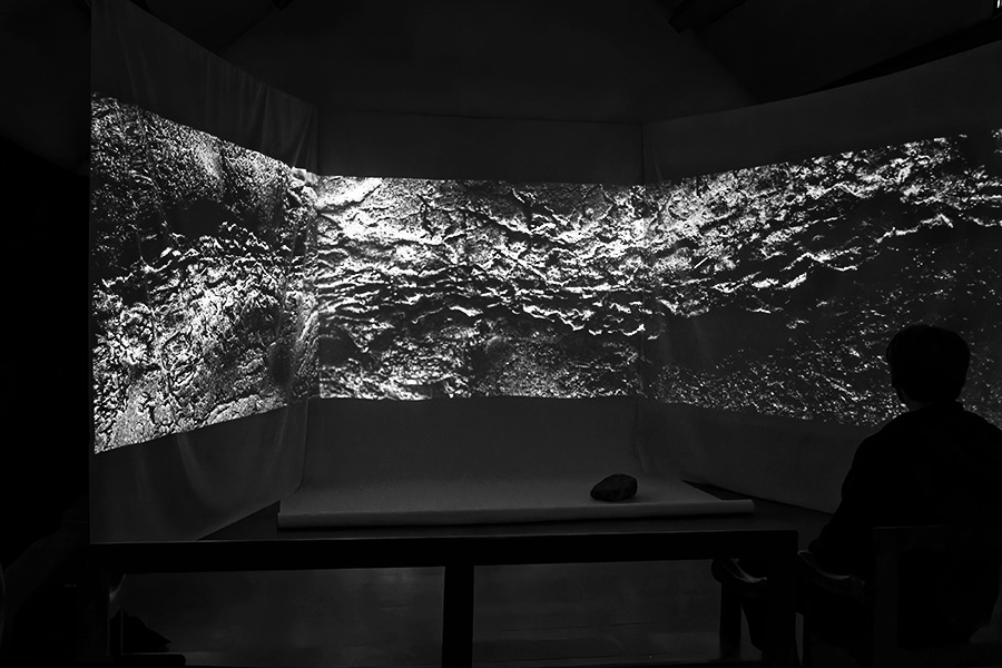 Installation et production d’un film en images fixes, « Naître de partout, une langue des pierres »